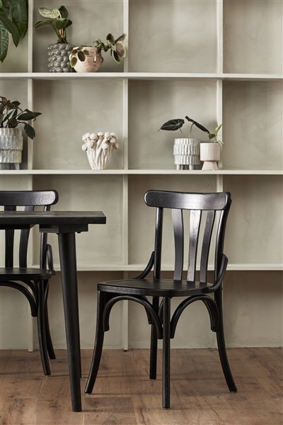 ELMO chair is made in elm wood with black finish. Seat depth: 41 cm, seat height: 46 cm.