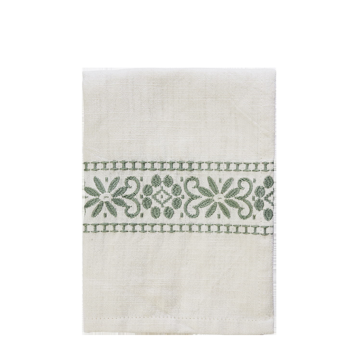 Madam Stoltz Embroidered kitchen towel Off white, sage
