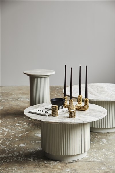A modern, but still timeless side table with vertical grooves on the wooden base. Fits in everywhere where a small table or deco stand is needed. Also available as a dinner table and a coffee table. To be cleaned with a moist cloth and mild soap.