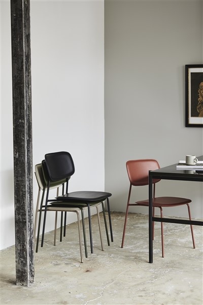 ESA dining chair is made in iron with a color powdercoating. The chair is stackable and for indoor use. Max. weight 125 kgs. Seat height: 45,5 cm. Seat depth: 43 cm.