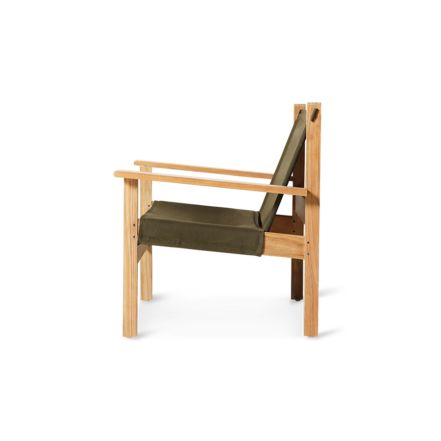 Embrace the spirit of adventure with the Explorer Chair, a canvas seat inspired by the rugged charm of camping in the great outdoors. More than just a nod to nature, this chair is a true homage to exploration, crafted with a sturdy wooden frame and durable canvas fabric. Designed for both comfort and versatility, it’s equally at home in your living room or on a sunlit terrace. With its minimalist design and timeless appeal, the Explorer Chair invites you to bring a sense of the outdoors into your everyday life. Material: Teak wood Material: Teak wood Remark: Regulations: Characteristic: Foodsafe: X Dishwasher proof: X Microwave proof: X Water resistant: No Seating height (cm): 38 Seating depth (cm): 54 Seating width (cm): 56,5 Height armrests (cm): 53,5 Backrest height (cm): 75 Backrest height (cm): 75