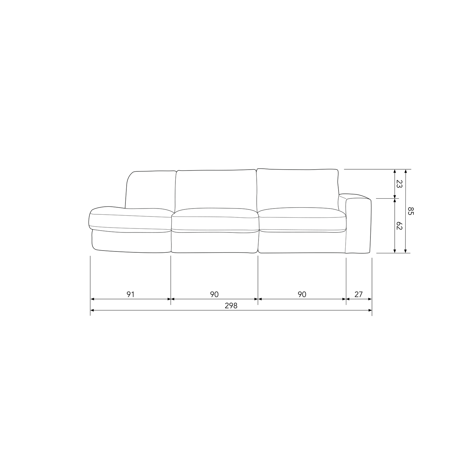 - Losse zitkussens met rits HxBxD: 20x90x81 cm