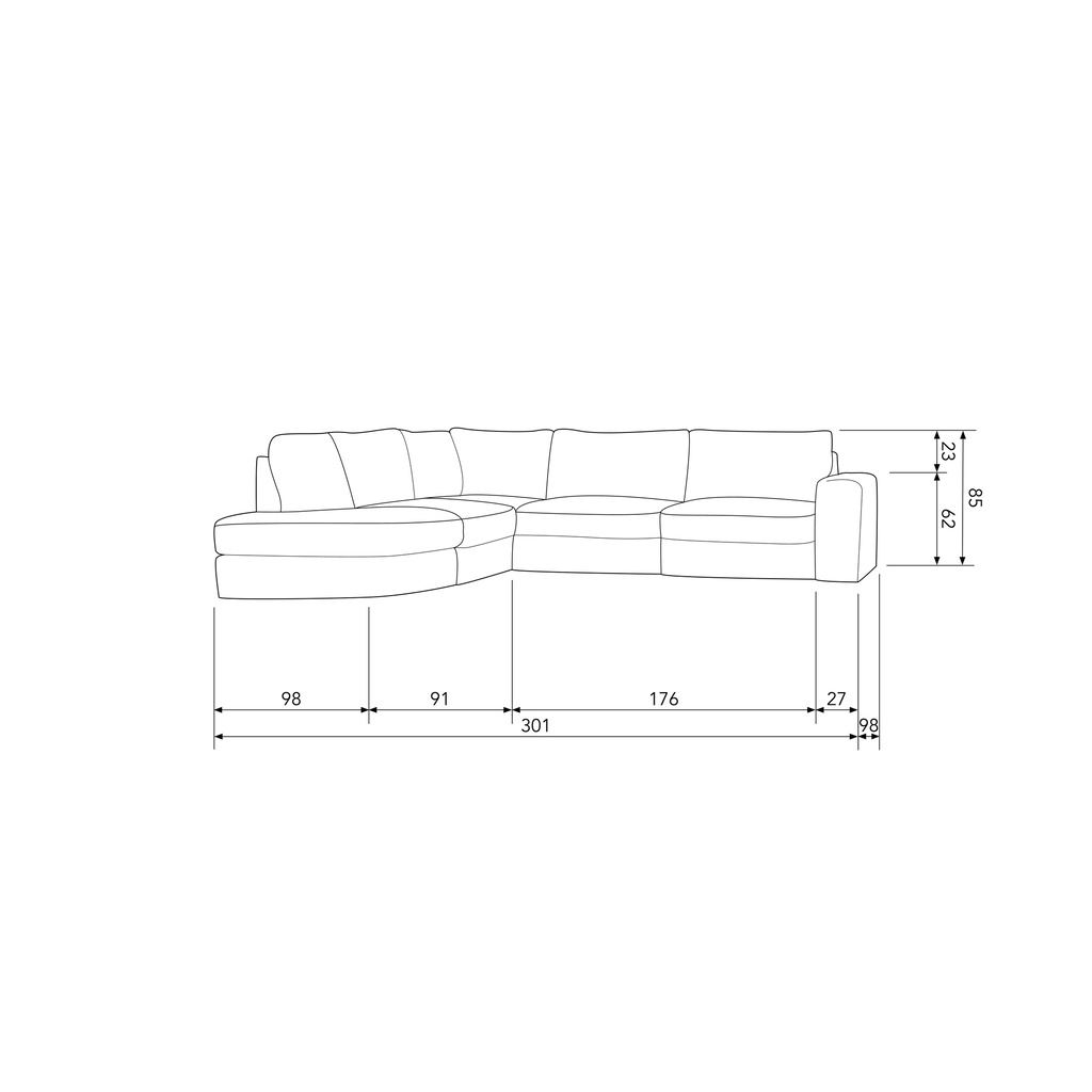 - Rugleuningbreedte: 301/147 cm