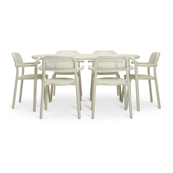 Ambience is the name of the game with Toní Tavolo. Up to six people can be seated around it: dining, enjoying drinks, playing cards a little too competitively, you name it. Combine it with a few Toní Chairs. Or a Bankski, which fits perfectly. Pure coincidence. Or perhaps not. Material: Aluminium Coating: Axalta (highest standard outdoor coating) Weight: 16,3 kg 6 persons dining table Features: UV-resistant • Lightweight • All weather-resistant • Adjustable feet