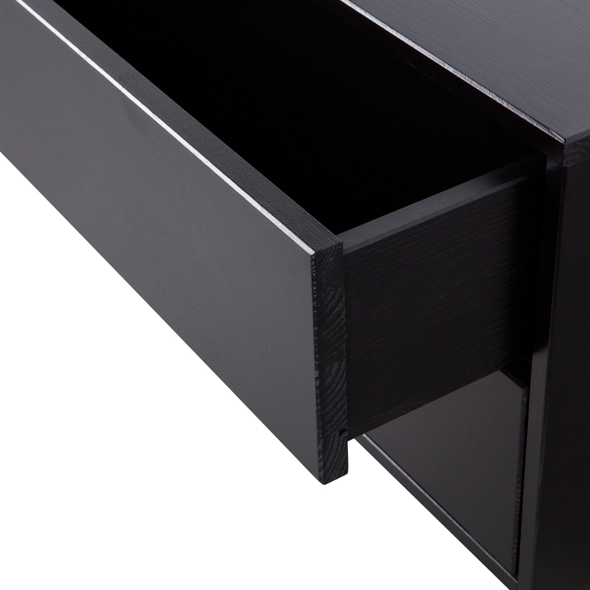 Het tv meubel heeft twee ruime laden met elk een inhoud van 11,5x68x30 cm (hxbxd). De onderrand van het Finca tv meubel laat aan de voorzijde 7 cm ruimte, hierdoor lijkt het alsof het tv meubel zweeft.