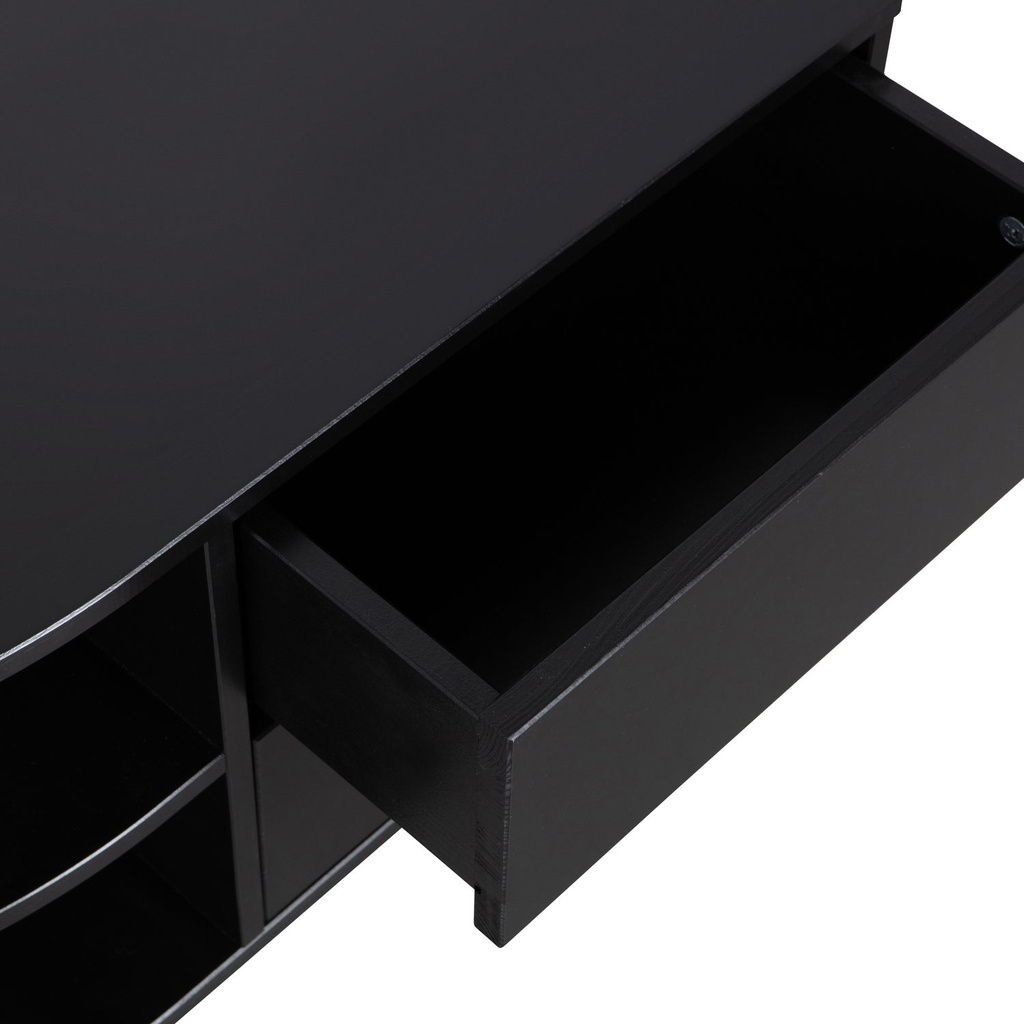 Het Finca tv meubel met rond element is een waar pronkstuk in de woonruimte. De open vakken bieden genoeg ruimte voor het presenteren van jouw mooiste woondecoratie. De twee laden houden nog eens een ruime opbergruimte uit het zicht. De onderrand van het tv meubel laat 7 cm ruimte over aan de voorzijde, hierdoor lijkt het meubel te zweven.