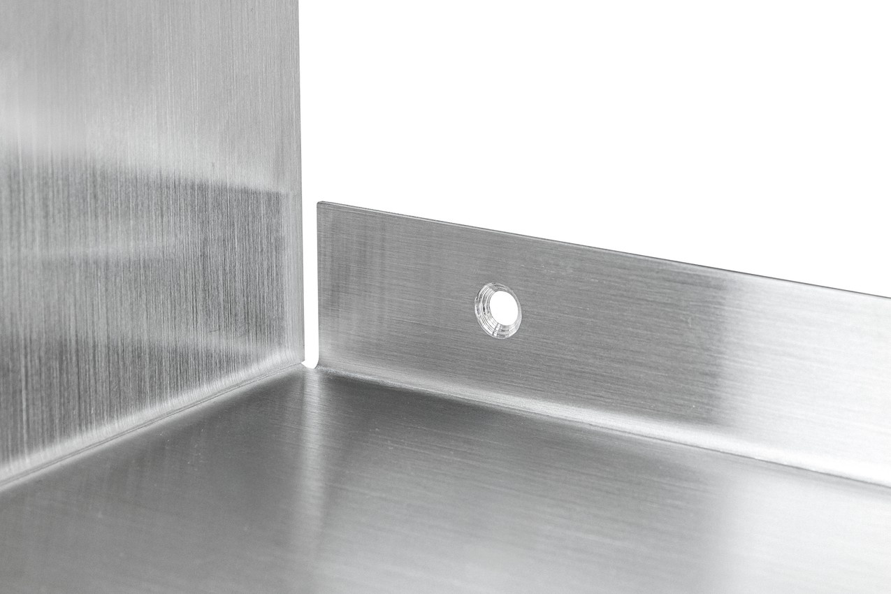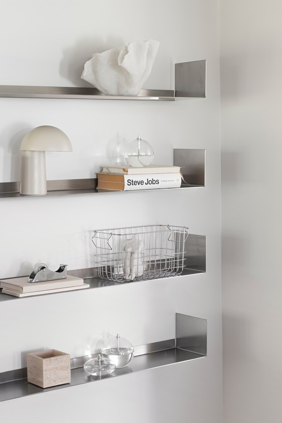 Made from 100% brushed stainless steel, the FLOAT shelf combines clean, angular lines with a light, floating appearance. The brushed finish adds a modern, industrial touch that fits seamlessly into Kitchens, living rooms, bathrooms or any space where practical and refined storage is needed. Despite its minimalistic appearance, the shelf is solidly constructed and mounts securely with four screws. It can be installed on its own or arranged in multiples for a more striking wall feature. Four screws and wall plugs for mounting on standard brick or concrete walls are included. For installation on other wall types, please consult your local hardware store for the appropriate fittings and guidance. FLOAT has a total weight of 3.8 kg. Maximum load is 15 kg. Care & Cleaning Instructions: Brushed steel is easy to maintain. Clean with a soft cloth and mild soapy water. Always clean, dry, and polish in the direction of the steel grain. Tip: To remove greasy fingerprints, use rubbing alcohol to degrease the surface. For a subtle shine, apply a few drops of cooking oil and polish it into the steel using a soft cloth. Please note: Over time, a natural patina may develop, such as minor scratches and signs of wear from regular use. This can be minimised with proper care and maintenance. - Material: Brushed steel - Washing/Care Instructions: Wipe with damp cloth.