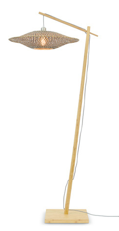 Floor lamp Bali bamboo h.176cm/shade dia.60x15cm nat./bl. M