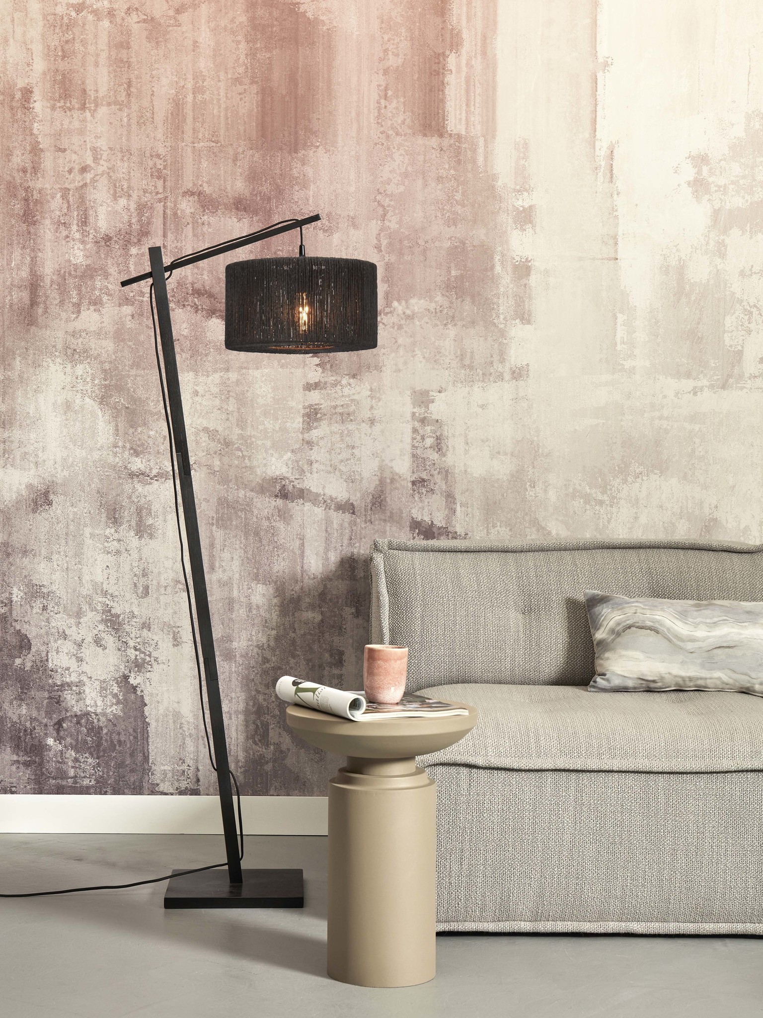 Good&Mojo Floor lamp Iguazu S bamboo bl. h.150cm/shade 30x16cm jute. black