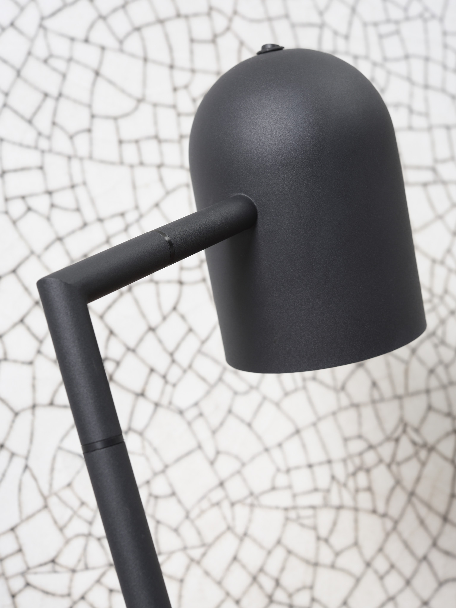 Floor lamp iron Marseille h.141cm/shade round h.17xdia.12cm, black. Material: Iron/cotton - Fitting: E27 - Watt: 60 - Min. / max. height: 141cm - Max. width 40cm - Size base 25cm x 0,5cm - Material/colour electr. Cord: Textile/Black - Length electr. cord: 210 cm