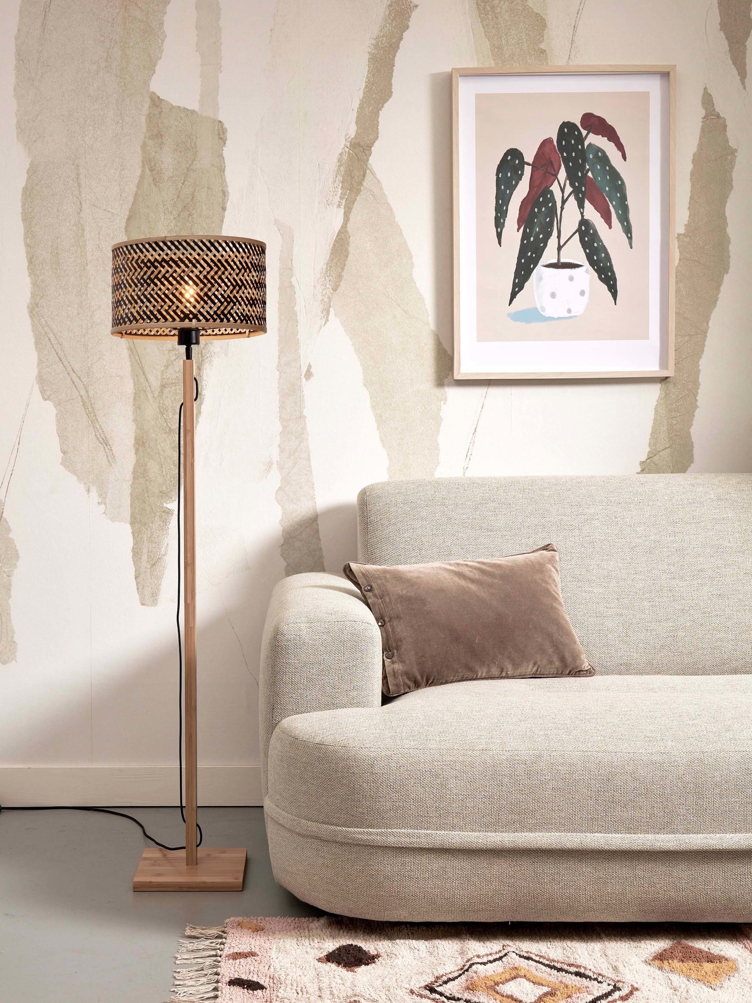 Good&Mojo Floor lamp Java straight bamboo nat h.128cm/shade dia.32xh.18cm bl/nat.