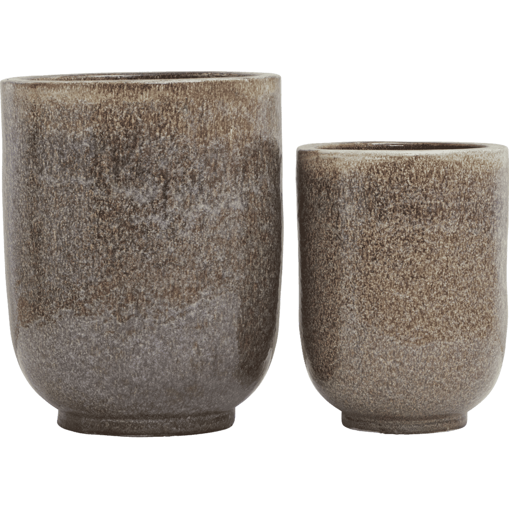Create a green and colourful space in the corner of your patio with stunning planters from House Doctor. With Pho, you get a set of 2 planters in 2 sizes in the most stunning, nougat-like shade. The planters are made of ceramic ware, and they come with a gorgeous, unique glaze where you will not find two identical items. Fill your planters with plants that match your style, and use them to add personality to your patio. The planters have a hole in the bottom and are frost proof to minus 20 degrees Celsius.