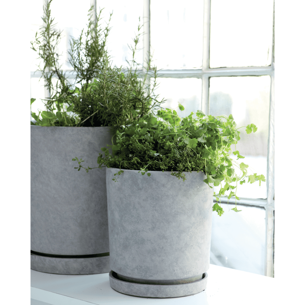 Create a green and colourful corner with beautiful pots on the terrace, balcony or by your front door. Hook from House Doctor consists of 2 outdoor pots in two sizes. The pots are made of concrete in a nice grey tone. These pots are ideal for creating an atmospheric environment in your outdoor space. Decorate the pots with plants that suit your style: green plants, colourful summer flowers or herbs. The pots weight may vary due to the material. The pots are frost-proof. The saucers are loose, and you will find holes in the bottom to make sure that the water drains when it rains.