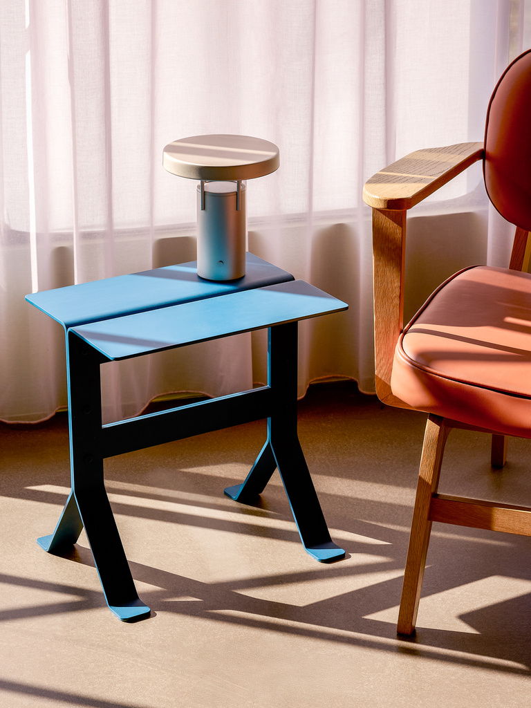 Introducing the Fold Side Table, a charming artefact for your living space that cleverly resembles a folded piece of paper. Crafted from powder-coated steel in a petrol hue, this table ensures durability wrapped in an intriguing design. Available in two distinct variants, each piece speaks to a nostalgia, almost reminiscing school time arts and crafts. Its sturdy, very heavy build makes it a reliable companion by your favourite armchair, holding your evening cuppa and latest read.
