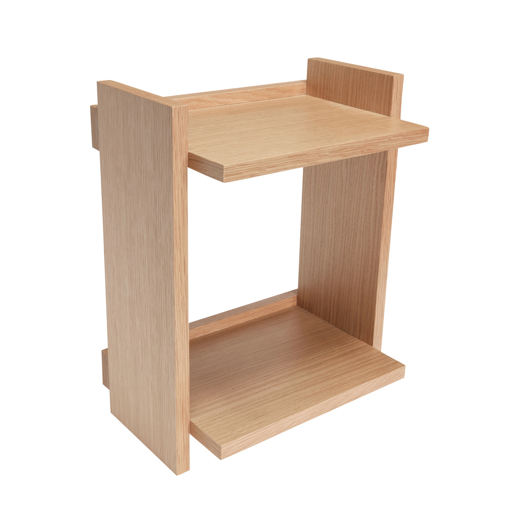Introducing the Forma Shelf, the perfect combination of functionality and style. Available in two stunning variants, this natural-coloured shelf is a must-have for any modern home. Crafted from FSC-certified wood and oak veneer, it not only adds a touch of elegance to your space, but also promotes sustainability. Its graphic shape with simple construction and keyhole mounting on the back make it sleek and timeless. Use it to store or showcase your favourite items, as it is adaptable for any room. Elevate your interior design game with the Forma Shelf.