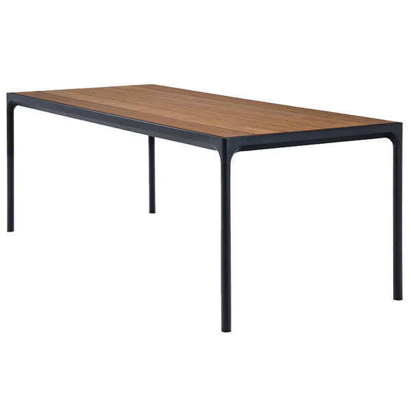 A dining table with a top and four legs – that is what you get in FOUR, no matter which size you choose. The special developed extruded profile in the table frame make FOUR a remarkable strong table. Comes in 4 different sizes with table top in bamboo. Legs in powder coated black aluminium. DIMENSIONS: H:74 x W:90 x D:210 cm MATERIALS: Frame: Powder coated black aluminum Table top: Bamboo lamellas DESIGNED BY: Henrik Pedersen