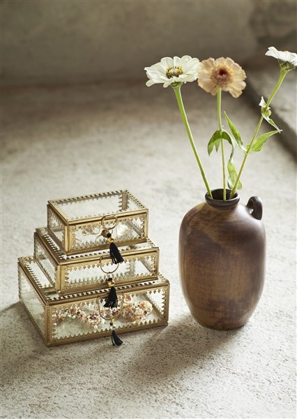 Madam Stoltz Madam Stoltz Glass box w/ tassel Clear, gold Clear, gold