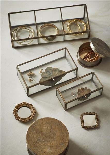 Madam Stoltz Madam Stoltz Glass boxes w/ brass leaf Clear, aged brass Clear, aged brass