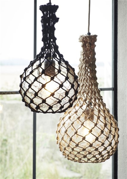 Madam Stoltz #REF! Glass ceiling lamp w/ jute net Black, clear