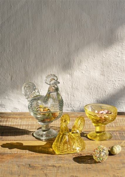 This glass hen bowl brings a light-hearted touch to any table, with a form inspired by farmyard life and crafted to suit interiors from India, , decorative. Can be used for serving or for a game of hide and seek with the season’s favourite sweets. Playful design. Humorous expression. Emphasises nature’s influence on the interior. Subtle curves and a softly detailed hen silhouette create a cosy mood, while the warm amber glass glows gently in daylight or candlelight. Whether filled with nuts, treats or small treasures, this glass hen bowl invites everyday use and a smile from guests of all ages. It sits comfortably on a shelf or windowsill when empty, becoming a small, sculptural reminder of simple countryside pleasures.