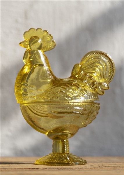 Charming glass hen bowl for playful homes