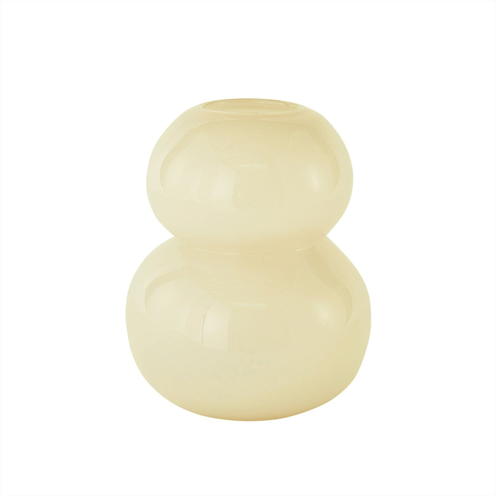 De mondgeblazen Lasi Vaas in vanille heeft een organische vorm en eenvoudige expressie, die perfect past in alle soorten huizen. Met zijn gekleurde glas zal de vaas in combinatie met je favoriete bloemen en takken het huis op de mooiste manier sieren.