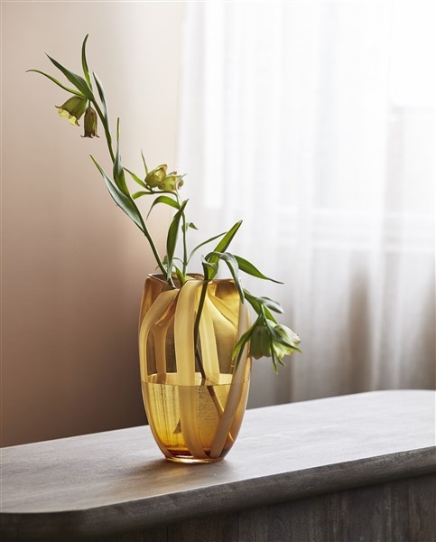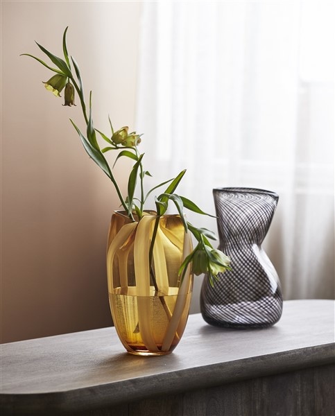 HALKI vase in glass has a handpainted stripe pattern. Use it for decoration or planting. Material:Glass