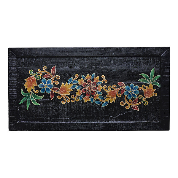Madam Stoltz Hand painted recycled wooden tray Black, blue, off white, orange, aqua