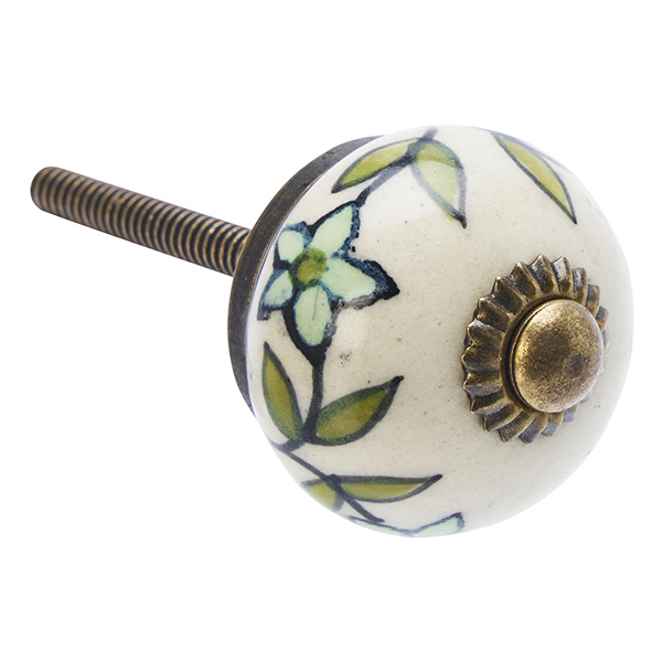 Madam Stoltz Hand-painted stoneware doorknob Off white, green, sage, black, ant.brass