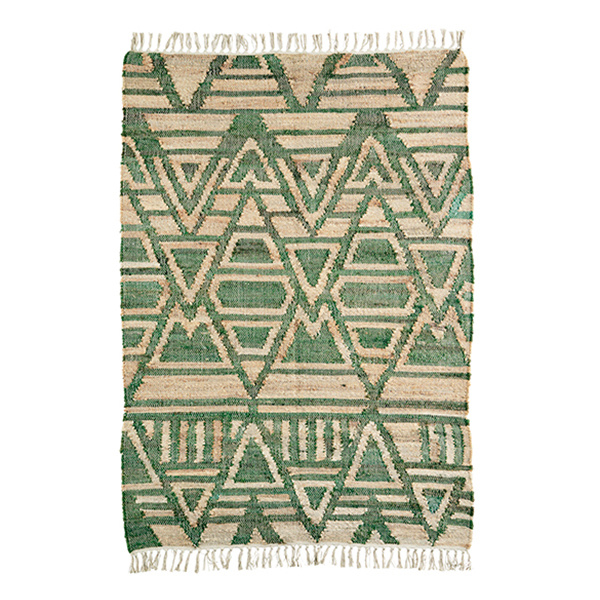 Madam Stoltz Madam Stoltz Handwoven jute rug Natural, green Natural, green