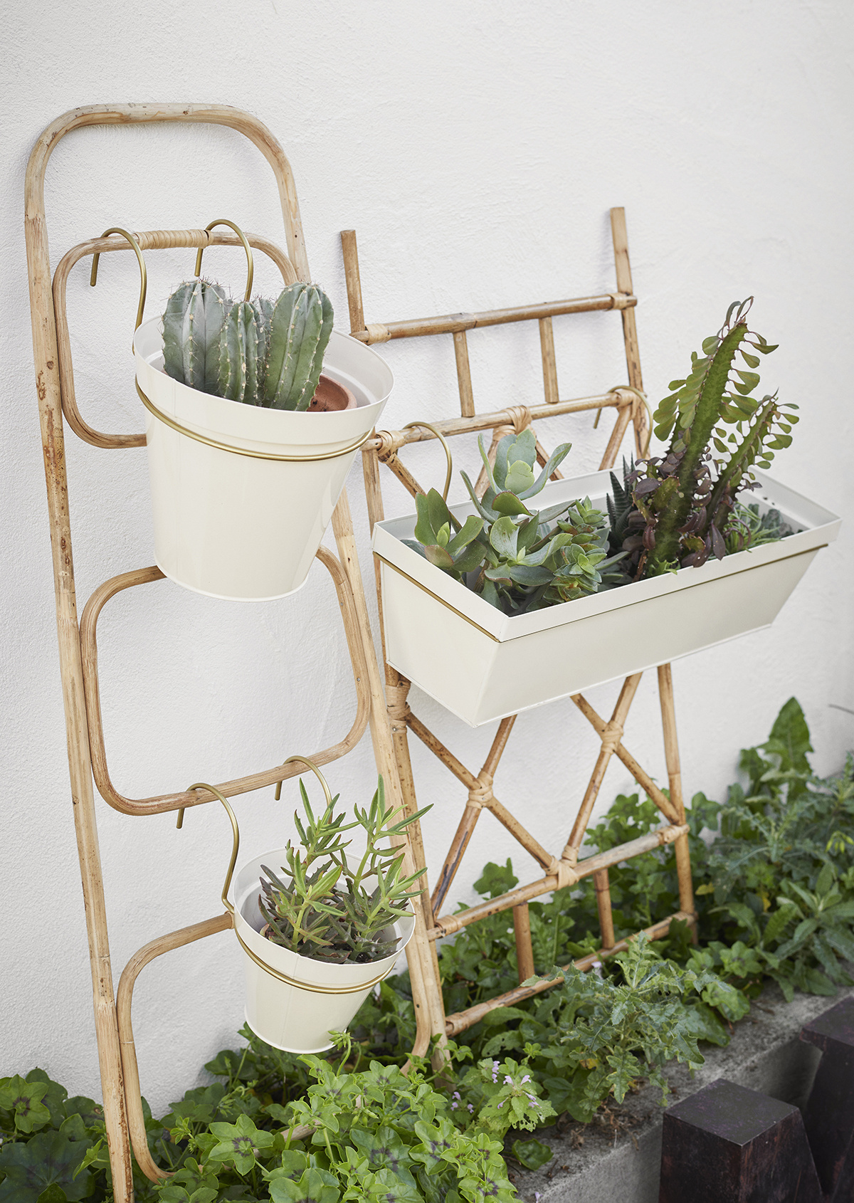 Madam Stoltz Hanging iron planter Cream ant.brass