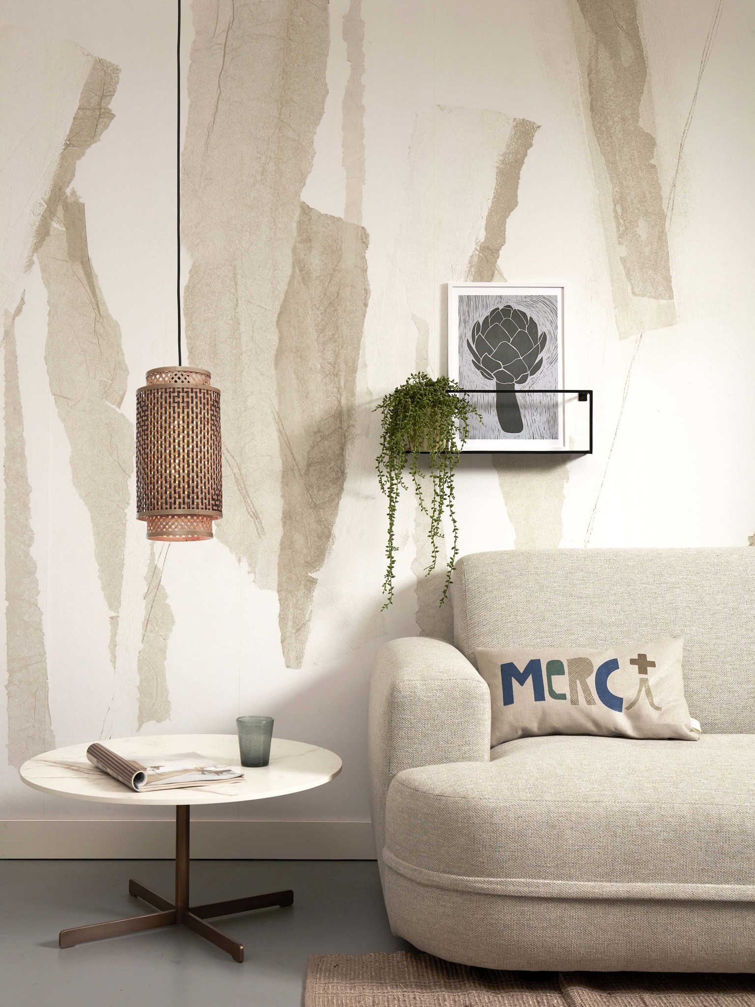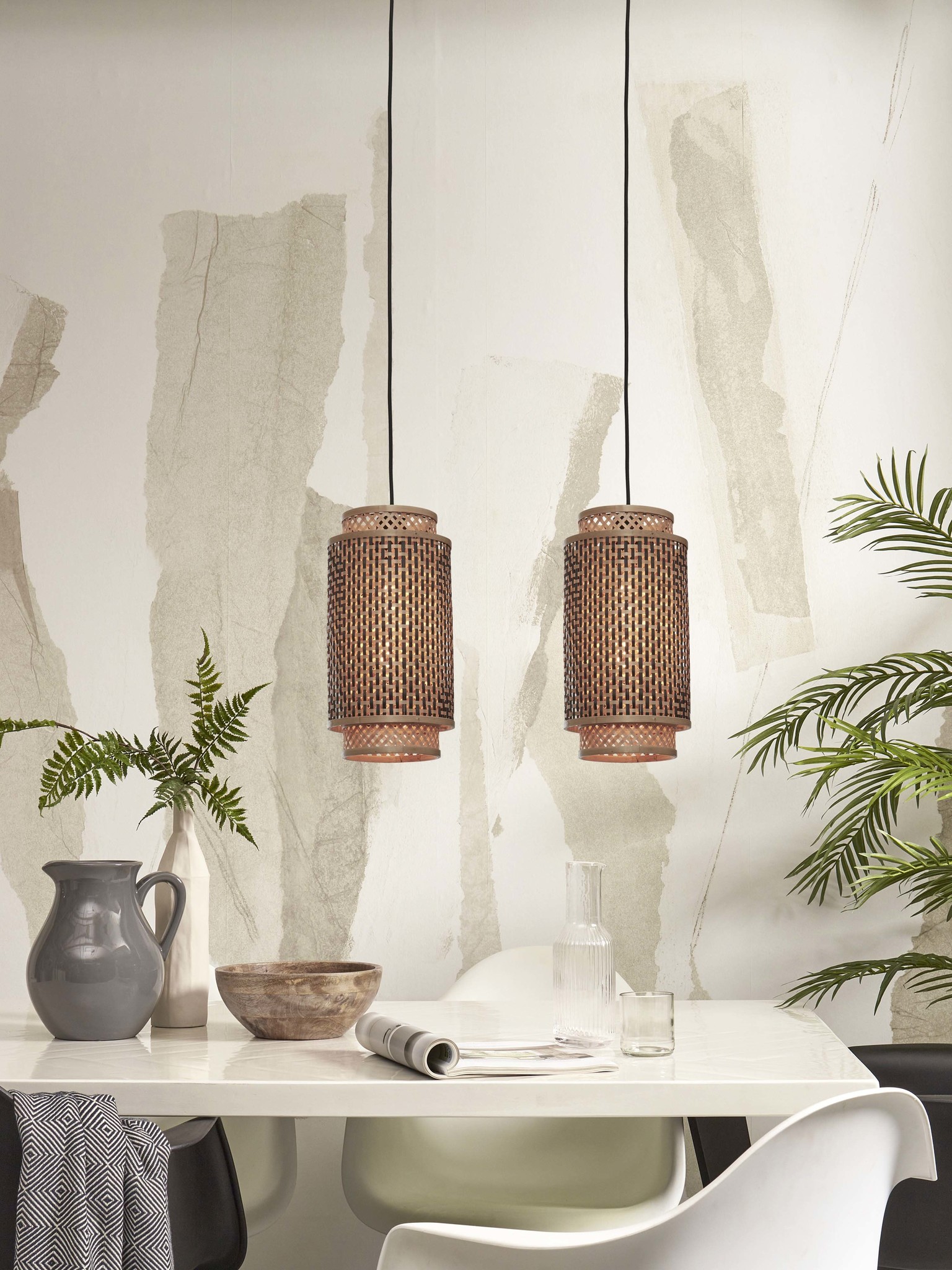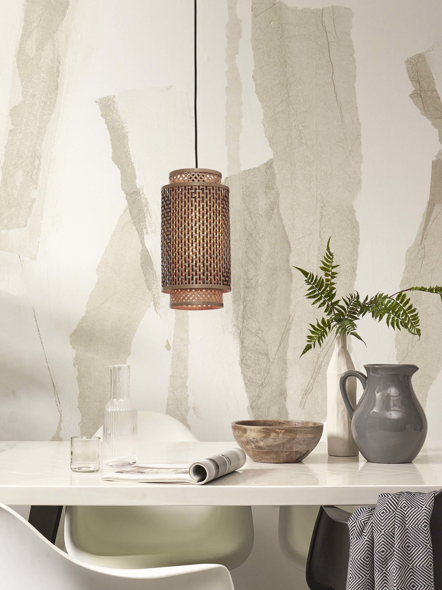 Good&Mojo Hanging lamp Bhutan bamboo/shade dia.18xh.35cm bl/nat.. L
