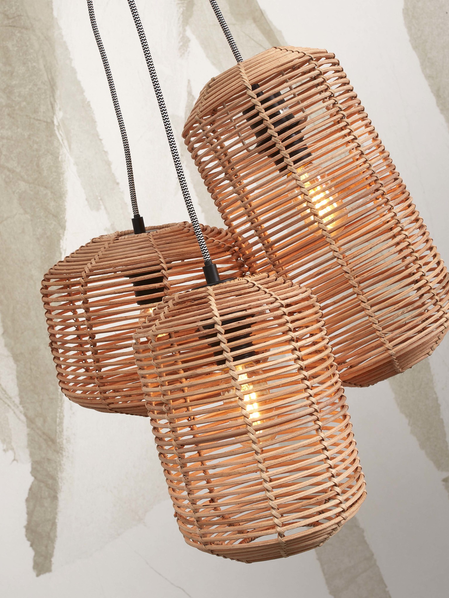 Good&Mojo Hanging lamp Tanami rattan/3-shade 18xh.25cm + 18xh.35cm + 25xh.20cm ass.. nat.