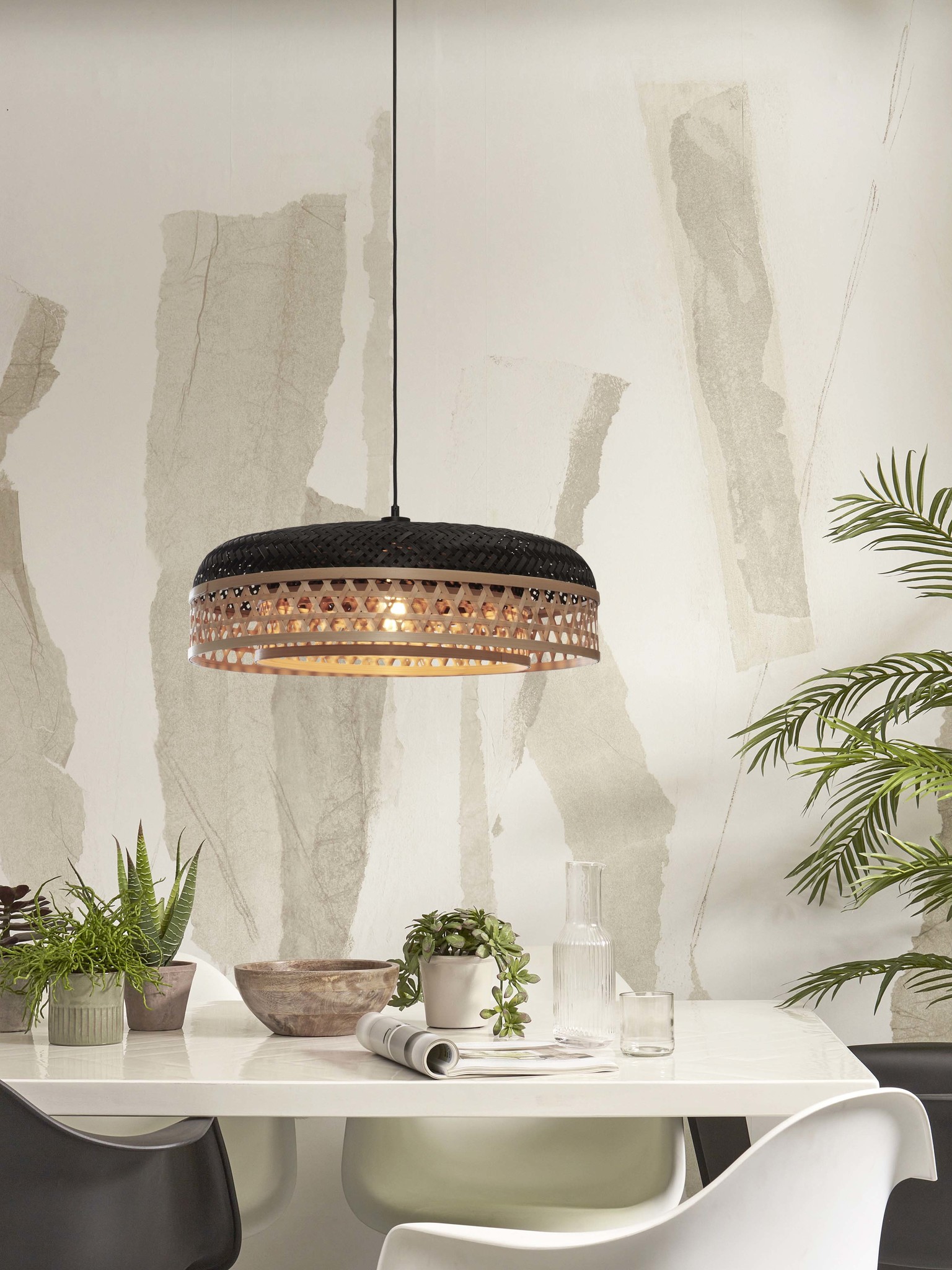 Good&Mojo Hanging lamp Ubud double shades bamboo dia.60x18cm. bl/natural