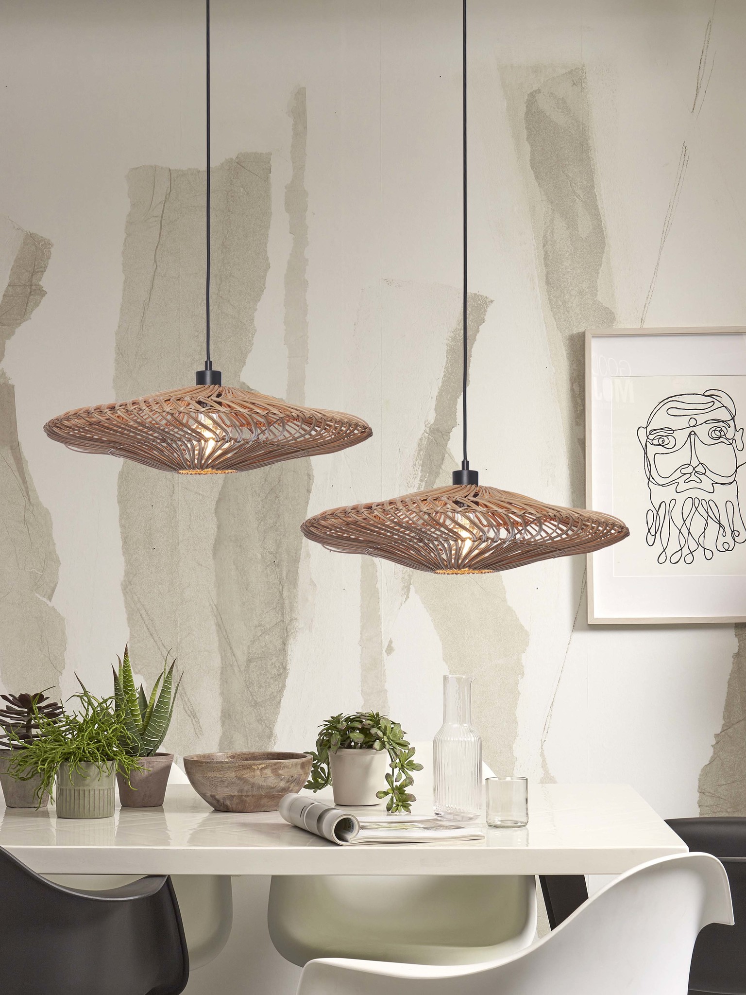 Good&Mojo Hanging lamp Zanzibar L rattan/flat dia.55xh.14cm. natural