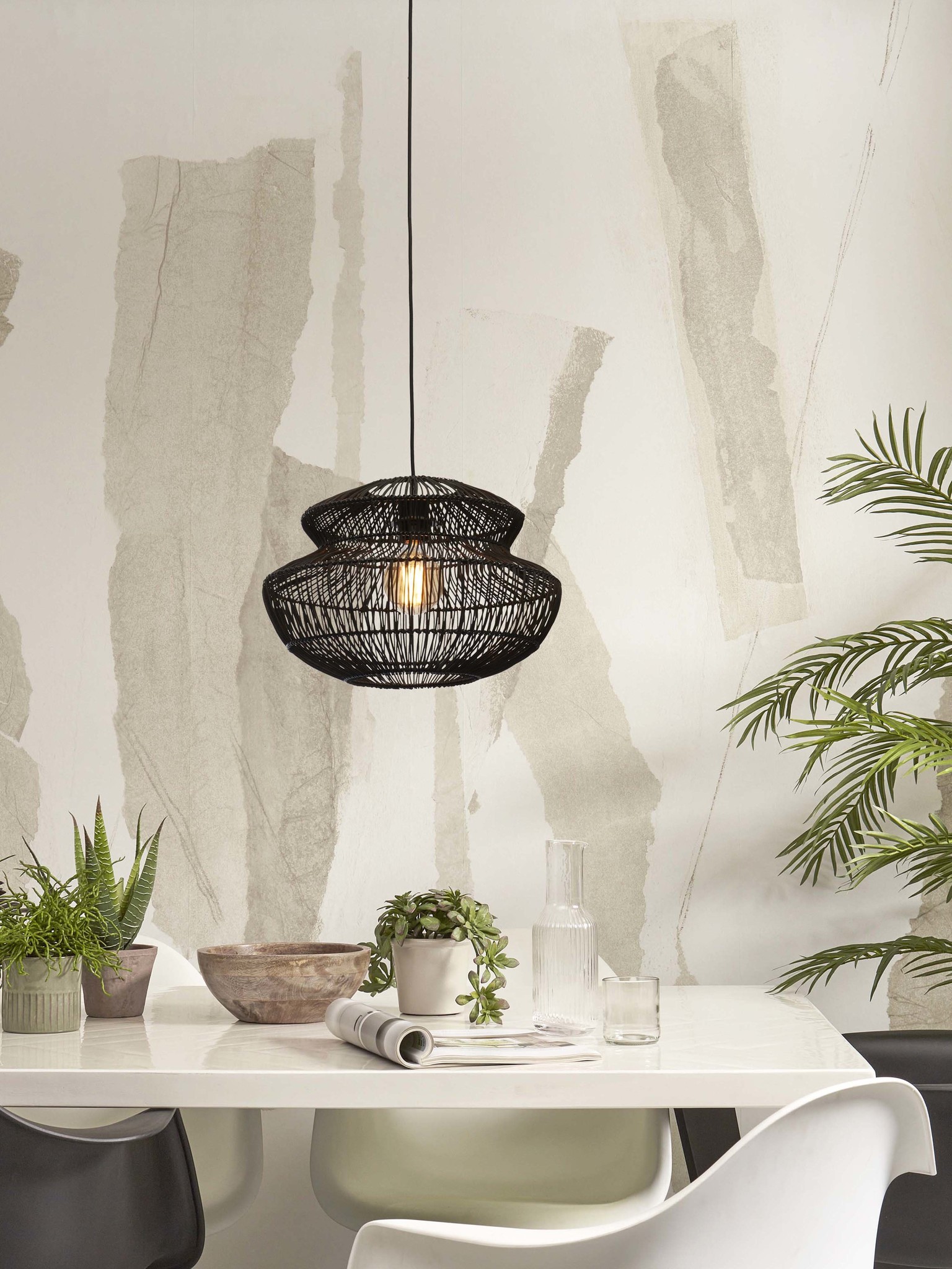 Good&Mojo Hanging lamp Zanzibar rattan/round dia.40xh.30cm. black