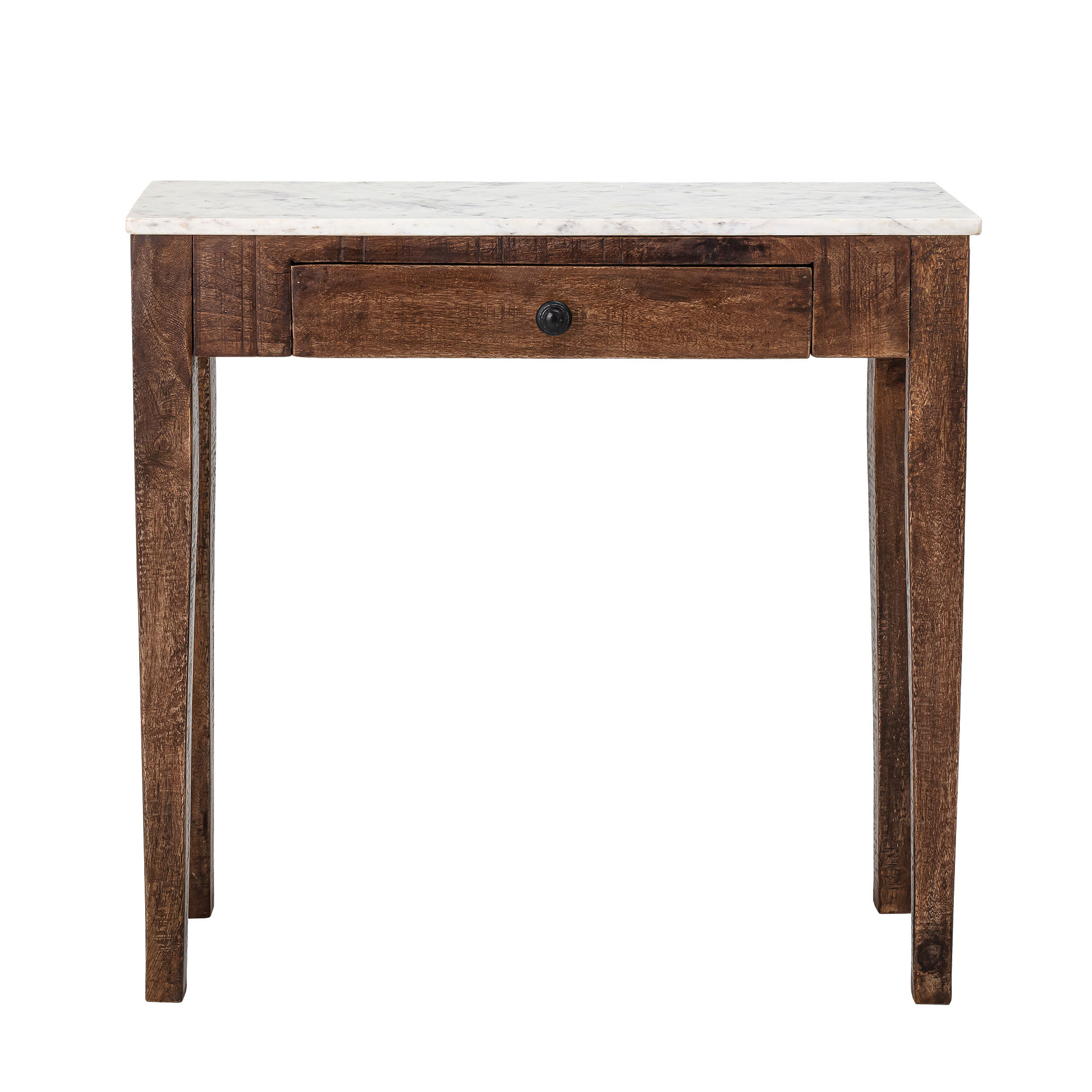 The Hauge Console Table from Bloomingville is an elegant console table that combines functionality and style. Featuring a small, practical drawer and a beautiful marble tabletop, it adds a touch of luxury to any room. The table is versatile and can be used as a console table in the hallway, a decorative element in the living room, or as a small desk in the office. Its compact design makes it suitable for smaller spaces while providing practical storage space for small items.
