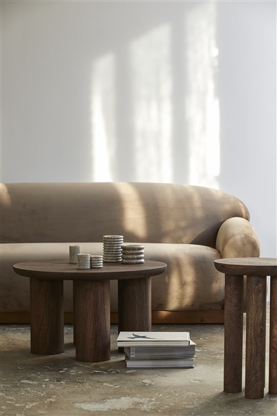 HELIN coffe table is a nice wooden table made in mango wood with a dark stained brown color. The design is also available in a side table.