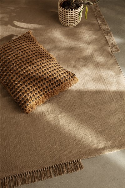 Our series of handwoven Hem Rugs puts post-consumer plastic bottles to good use: each sustainable design is made from repurposed PET-yarn, giving you a soft yet durable finish with a tactile, woolen feel that works as well in your home as it does outdoors. The flatweave rug is detailed with asymmetrical rows of fringed trim that underscore its artisanal feel. With the help of specialized technology, the Hem series presents a sustainable line of textiles made entirely from post-consumer plastic bottles. Each Hem Rug is made using 354 bottles. This technique gives you incredibly durable designs while helping to clean up the oceans. Rugs, cushions and mats made from plastic may not initially sound like a textile that is soft to the touch, but with the Hem series won’t leave you longing for virgin wool. Not only are the textiles practical, easily cleaned and suitable for outdoor use, they also feel just as lovely as any other similar design.