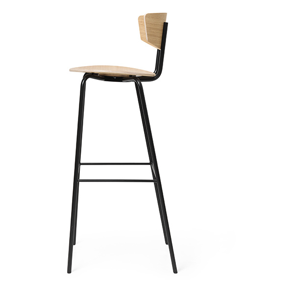 Staying in line with the essence of the Herman seating series, this FSC™-certified counter addition preserves the sleek lines and comfort of the curved backrest, forming a classic chair in the intersection of aesthetics and function. This is a lower version of the bar stool with a footrest for extra sitting comfort, perfect for nights spent in good company in the kitchen or at the bar. Care instructions: Wipe with a damp cloth Material: Seat and backrest: FSC™ Mix-certified oak veneer. Frame: Black powder coated steel Product note: Registered design Sustainability note: Seat and backrest: FSC™ Mix-certified oak veneer. Frame: Black powder coated steel