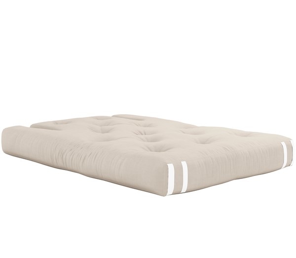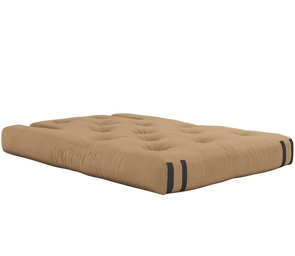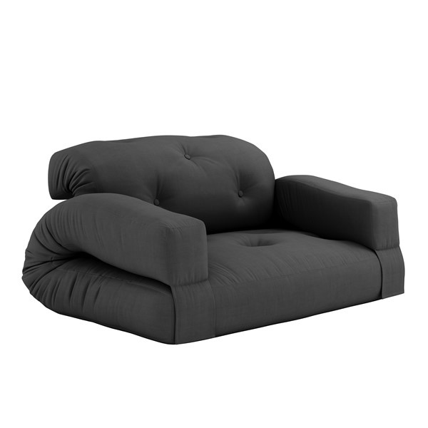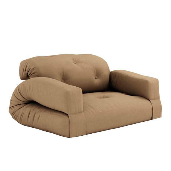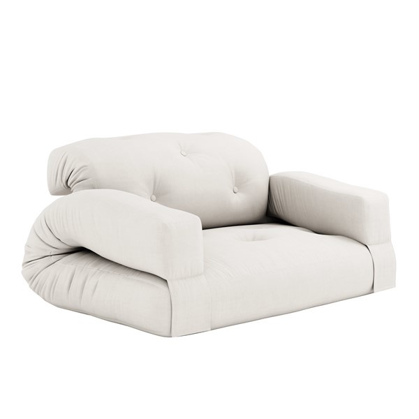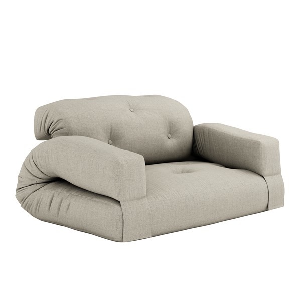 Share . Unstrap . Relax Hippo is a comfy futon sofa that can easily be converted into a mattress. By releasing the back of the sofa and lifting up the arms, Hippo lays out flat, becoming a thick, rich mattress that’s perfect for guests and sleep-overs. Design by Anders Backe, Anne-Sofie Voss, Ida Sofie Lange, Lars Wigh and Troels Rask Pedersen for Karup Design. Material Cover: 80 % cotton + 20 % polyester - Linen cover : 75 % cotton + 25 % linen. Mattrass: 25 cm recycled mixed fibre mattress with a core of 12 cm foam Filling mattress: 90-95% cotton + 5-10% polyester. Care instructions: Our mixed fabric is made from 80 % cotton and 20 % polyester. Do only clean with a dry cloth to prevent stains. Max. weight 90 kg