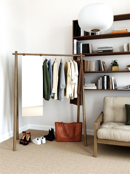 Make it a breeze preparing and fitting your outfit in a stylish and easy way with Hongi clothing rack + mirror. You will love it for presenting your favorite pieces with grace - and for having your mirror just where it&rsquo,s needed.