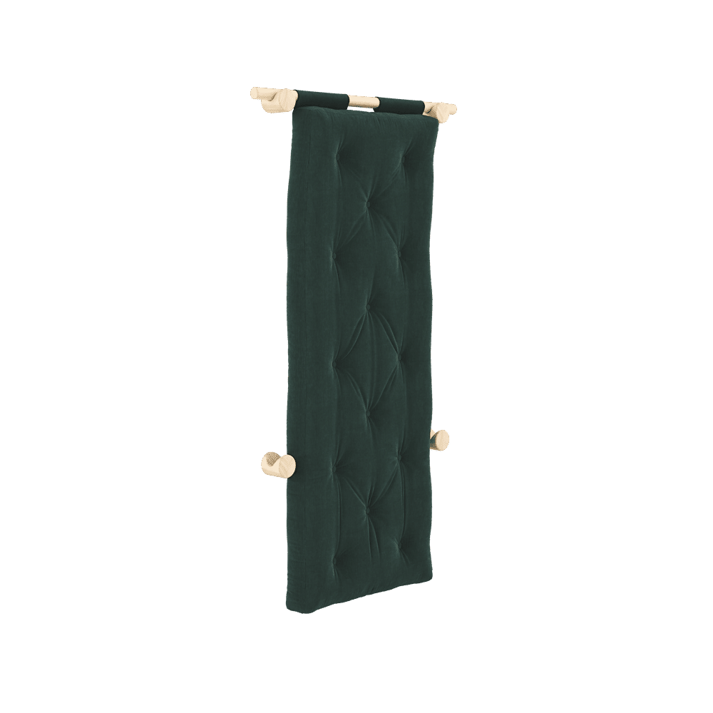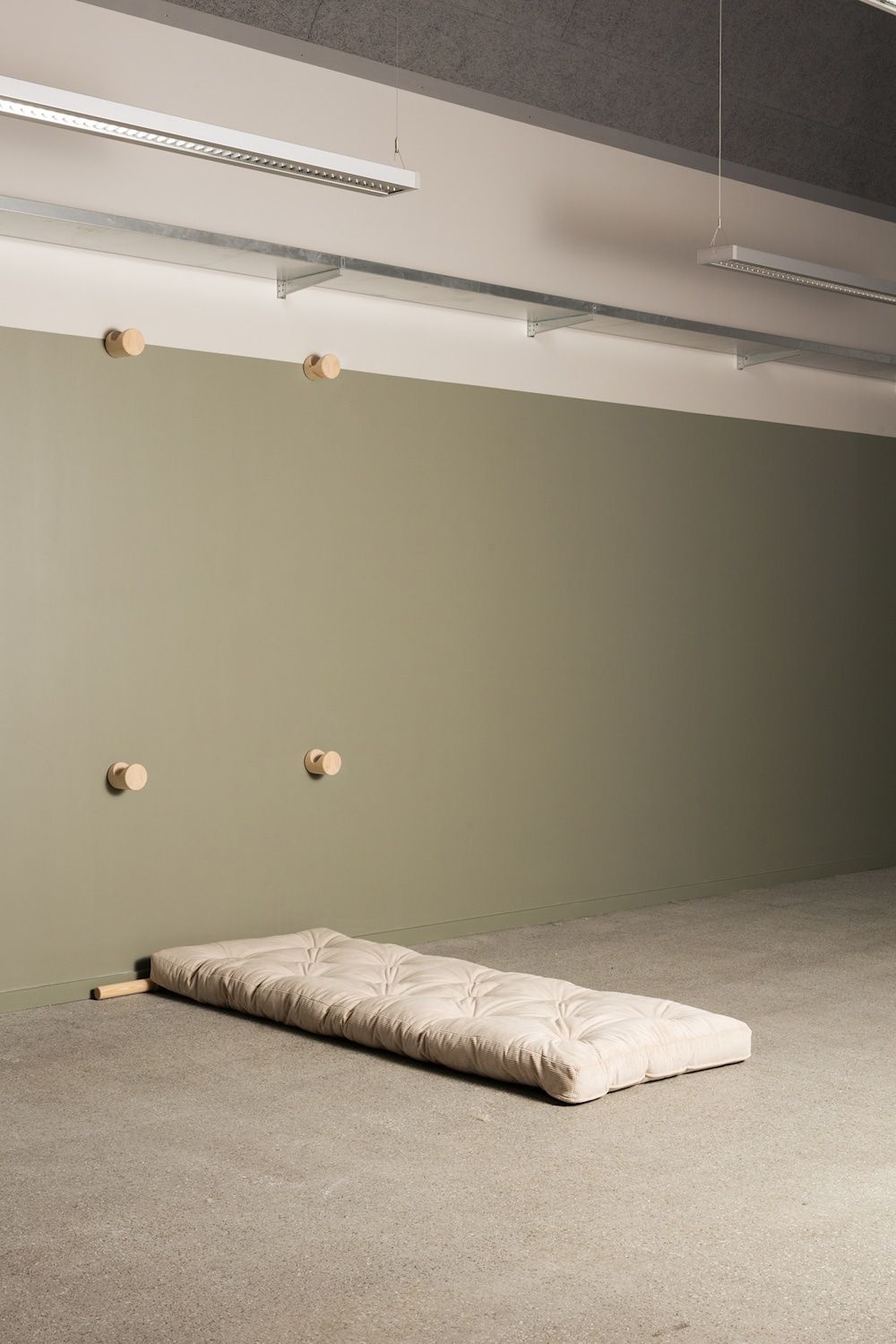 The four wall-mounted brackets keep Hooked securely in place while allowing it to function as a decorative element in the room when stored. When you need a seat, simply move it to the lower position for a comfortable lounge setup. Ready for sleep? Just unfold the mattress onto the floor &ndash, and you have a cosy bed prepared in seconds.