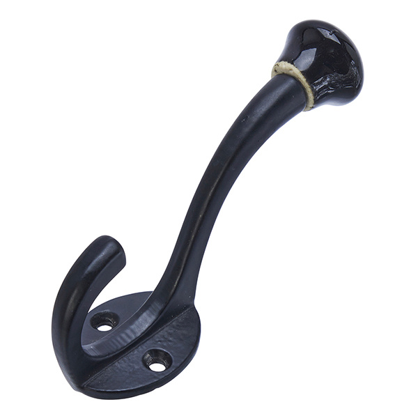 Madam Stoltz Iron hook w/ stoneware knob Black