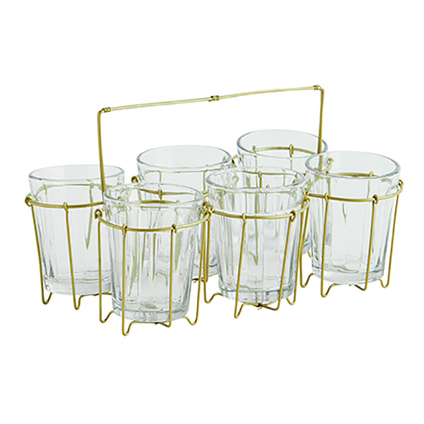 Madam Stoltz Madam Stoltz Iron rack w/ drinking glass Ant.brass, clear Ant.brass, clear