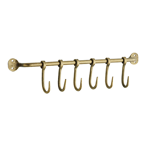 Madam Stoltz Iron wall rack w/ hooks, Ant.brass