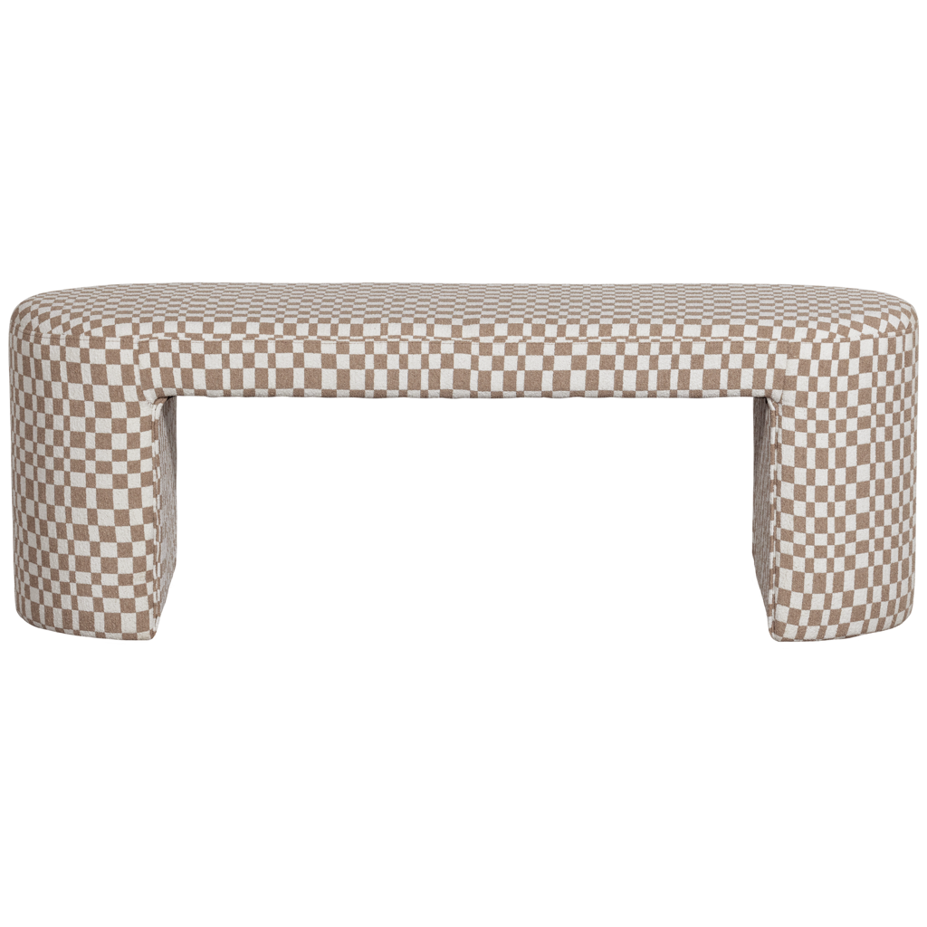 - Compact bankje met vriendelijk design - Volledig bekleed met een trendy stof - Zonder rugleuning - H 46 cm x B 130 cm x D 46 cm Het Jacob bankje is een opvallend item uit de collectie van het Nederlandse interieurmerk WOOOD. Het volledige bankje is bekleed met de unieke Chess stof, wat het ontwerp een vriendelijke uitstraling geeft. De royale zitting biedt genoeg ruimte voor twee a drie personen en vanwege de bescheiden diepte van dit artikel is het zeer ruimtebesparend. Kenmerken Onze Chess-stof is een geweven textiel met een uniek design en een gelijkmatig weefpatroon. Deze stof is voorzien van een speels blokkenpatroon en is vervaardigd uit 100% polyester. Chess is geschikt voor intensief woongebruik en heeft een Martindale-waarde van 40.000. Afmetingen - Hoogte: 46 cm - Breedte: 130 cm - Diepte: 46 cm - Poothoogte: 35 cm - Pootdikte: 23 cm - Tussenruimte poten: 88 cm - Zitdikte: 12 cm - Draaggewicht: 100 kg Onderhoud Bij eventuele vlekken direct droogdeppen met een schone doek of tissue. Beslist niet wrijven! De meeste vloeistoffen zijn te verwijderen met lauw water. Maak gebruik van een zachte, ronddraaiende beweging van buiten naar binnen. Als de stof losgehaald kan worden van het meubel is wassen op 30 graden of de stof laten stomen, mogelijk. Levering Het artikel wordt per stuk, volledig gemonteerd, geleverd. Plaats voor het beschermen van harde vloeren viltglijders aan de onderzijde van de poten.