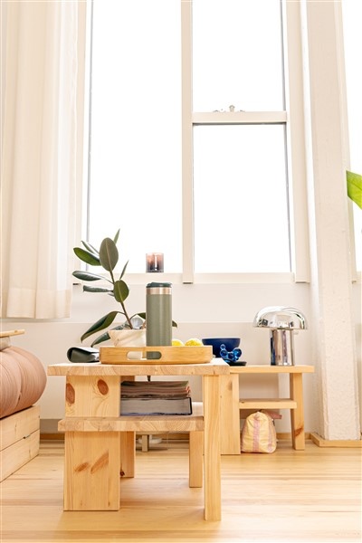 Use it as a natural side table next to your Japan bed, or let it stand alone as a functional piece of furniture in your living room, hallway, or wherever you need a practical and stylish element. The asymmetrical construction gives the table a sculptural feel and makes it beautiful from every angle &ndash, no matter how you turn it.