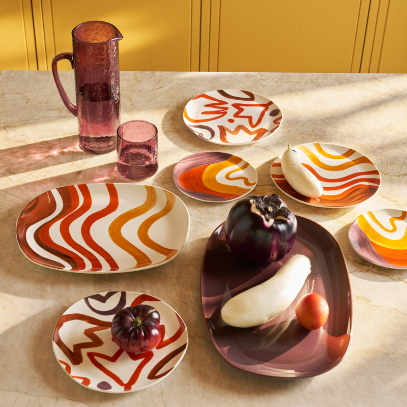 Urban Nature Culture’s latest collection brings a brand new series of recycled glass items, a prime example of circularity. Thousands of pieces of recycled glass waste were melted back together, blown and hammered by hand, in faraway India. They were given a second life, joined forces in the Recycled Glass Jug – showcasing real craftmanship in its hammered, transparent glass and organic design. Now available in a smashing fudge colour, sublimely reflecting anything you serve in it.