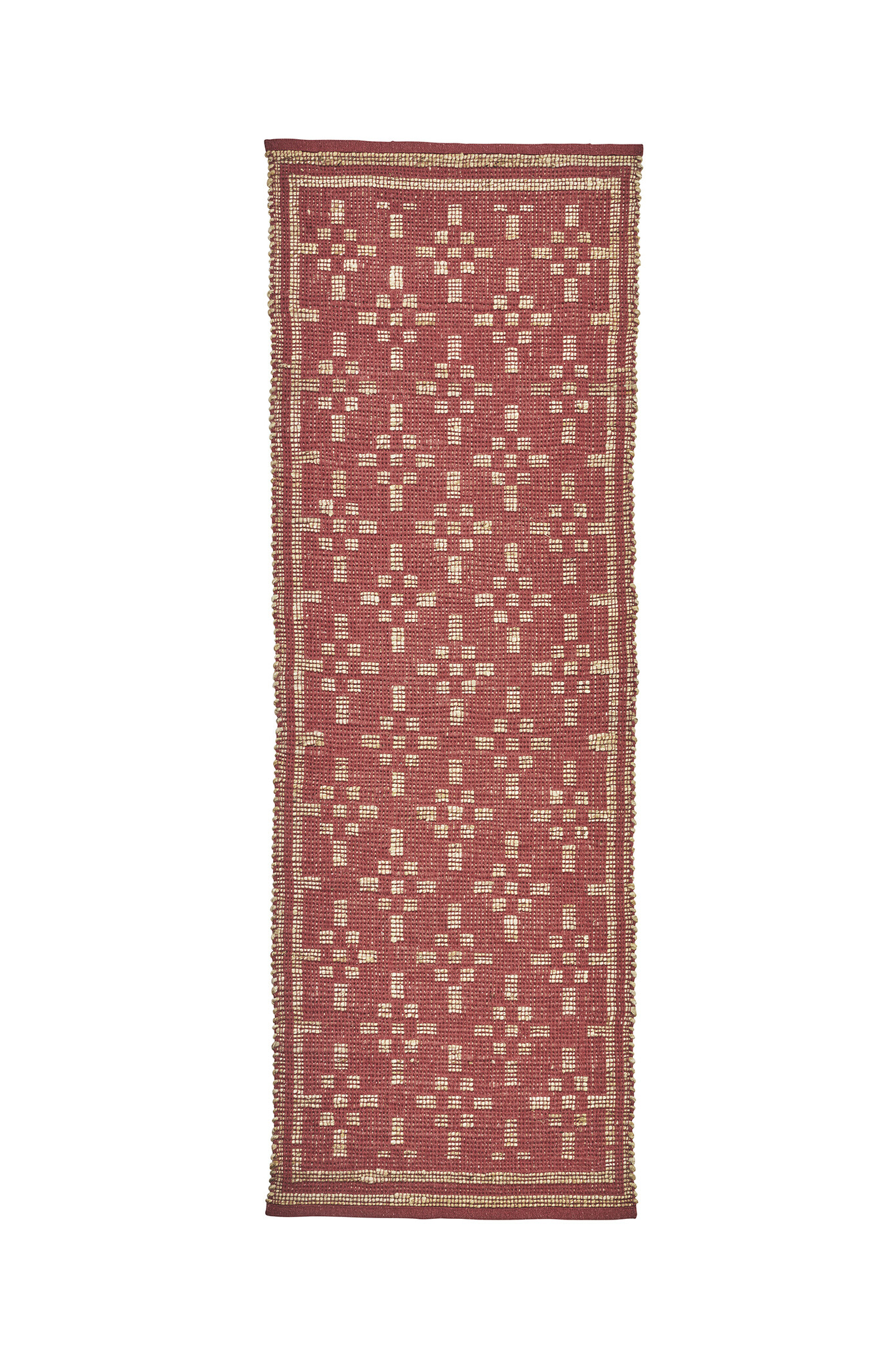 This runner features an all-over pattern, making it suitable for different rooms. Its design adds warmth and texture, enhancing the aesthetic of any space. The combination of cotton and jute ensures durability while maintaining a natural look, making it a versatile addition to your interiors.